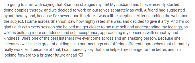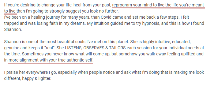 Hypnotherapy helped me rewrite those. And when the subconscious program changed, my relationships changed. My standards changed. My entire relationship with myself changed.